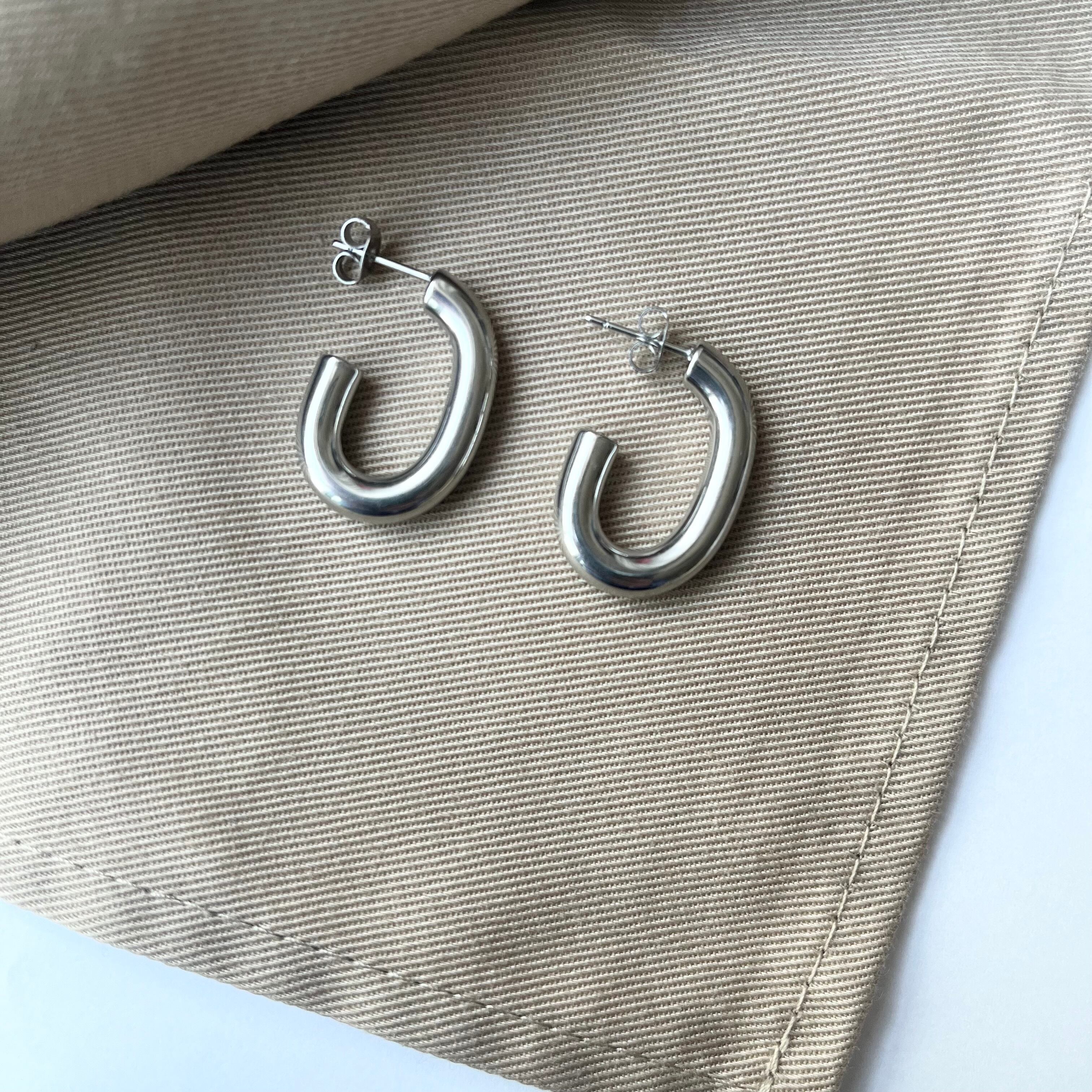シンプルなデザインが魅力の【サージカルステンレス】C type oval pierce。サージカルステンレス製であるため、アレルギーを気にせず長時間つけることができます。オーバル型のフープピアスは、どんなスタイルにも合わせやすく、シンプルながらも存在感があります。ゴールドとシルバーの2色展開なので、お好みのコーディネートに合わせてお選びいただけます。