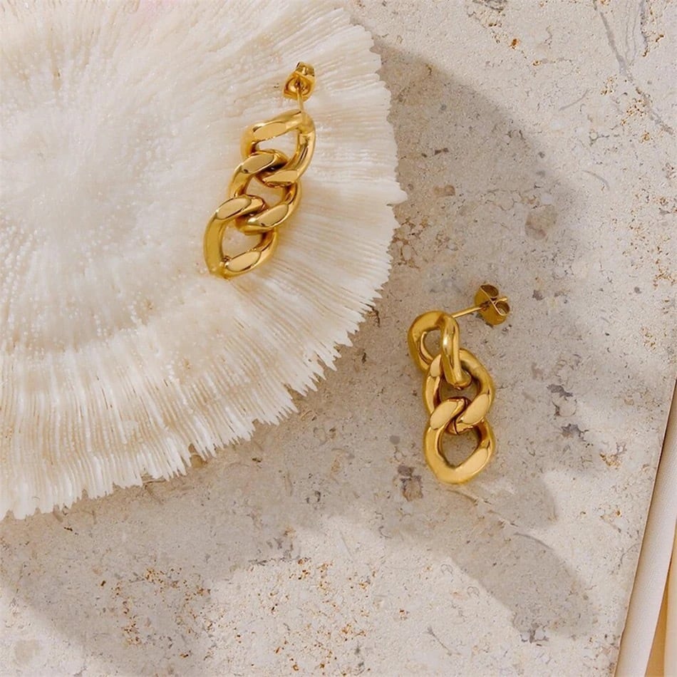 チェーン形状のデザインが個性的で、小ぶりなサイズ感がおしゃれを演出。耳元で揺れるチェーンがさりげないアクセントになり、カジュアルコーデにマッチします。