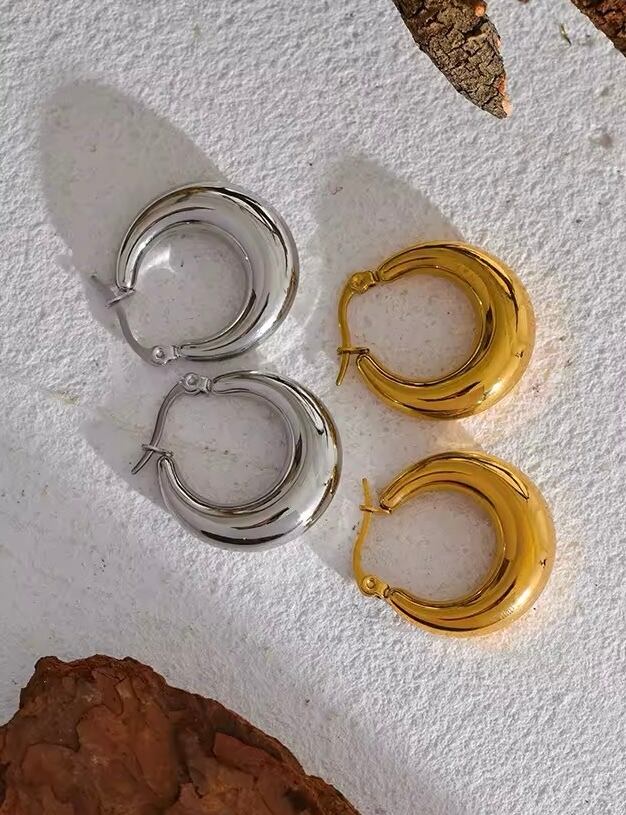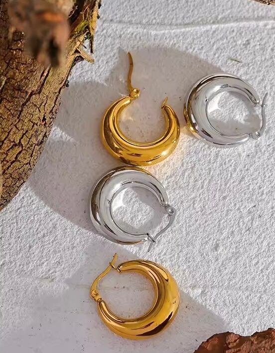 シンプルながらも存在感のある三日月デザインが耳元で輝き、カジュアルコーデにぴったりなデザイン。普段使いにもおすすめのアイテムです!